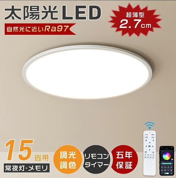 「目に優しい太陽光LED」 5年保証 シーリングライト LED 北欧 調光調色 おしゃれ 超薄型 リモコン スマホ対応 6畳 8畳 10畳 12畳 間接照明 和室 洋室 天井照明kroca888