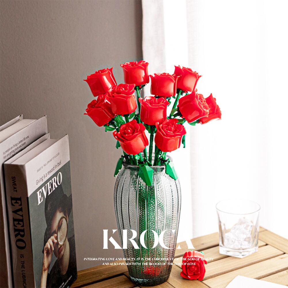 Kroca クロカ ブロック おもちゃ ローズ 花 ギフト プレゼント フラワーブーケ バラ 花束 ギフト