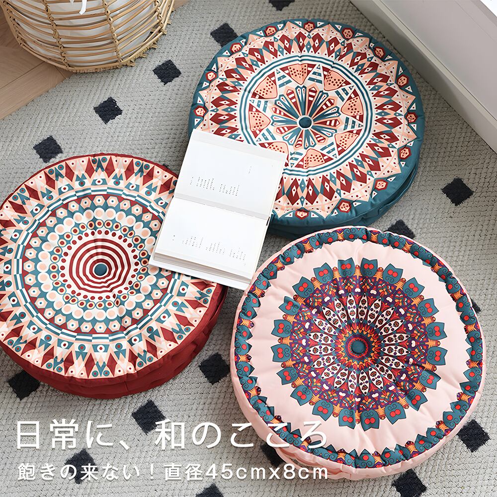 座布団 クッション 厚手 45×45cm ボヘミアン柄 フロアクッション 大きい 丸 床 座る