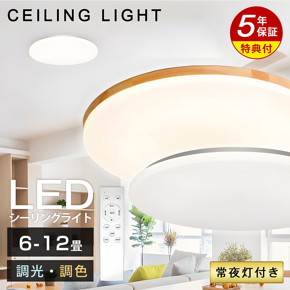 〈Kroca限定発行〉 シーリングライト led おしゃれ 照明 電気 10畳 12畳 LEDシーリングライト リモコン 北欧 明るい 調光 調色 豆電球常夜灯付き タイマー ライト 6畳 8畳 リビング 子供部屋 寝室 和室 洋室 5年保証 インテリア照明 カフェ リビング用