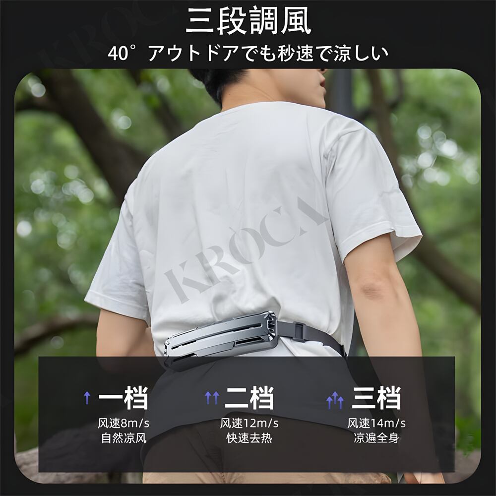 腰掛け扇風機 強力 ベルトファン 大容量5000mAh 4時間動作 PCM涼感素材 3段階風量