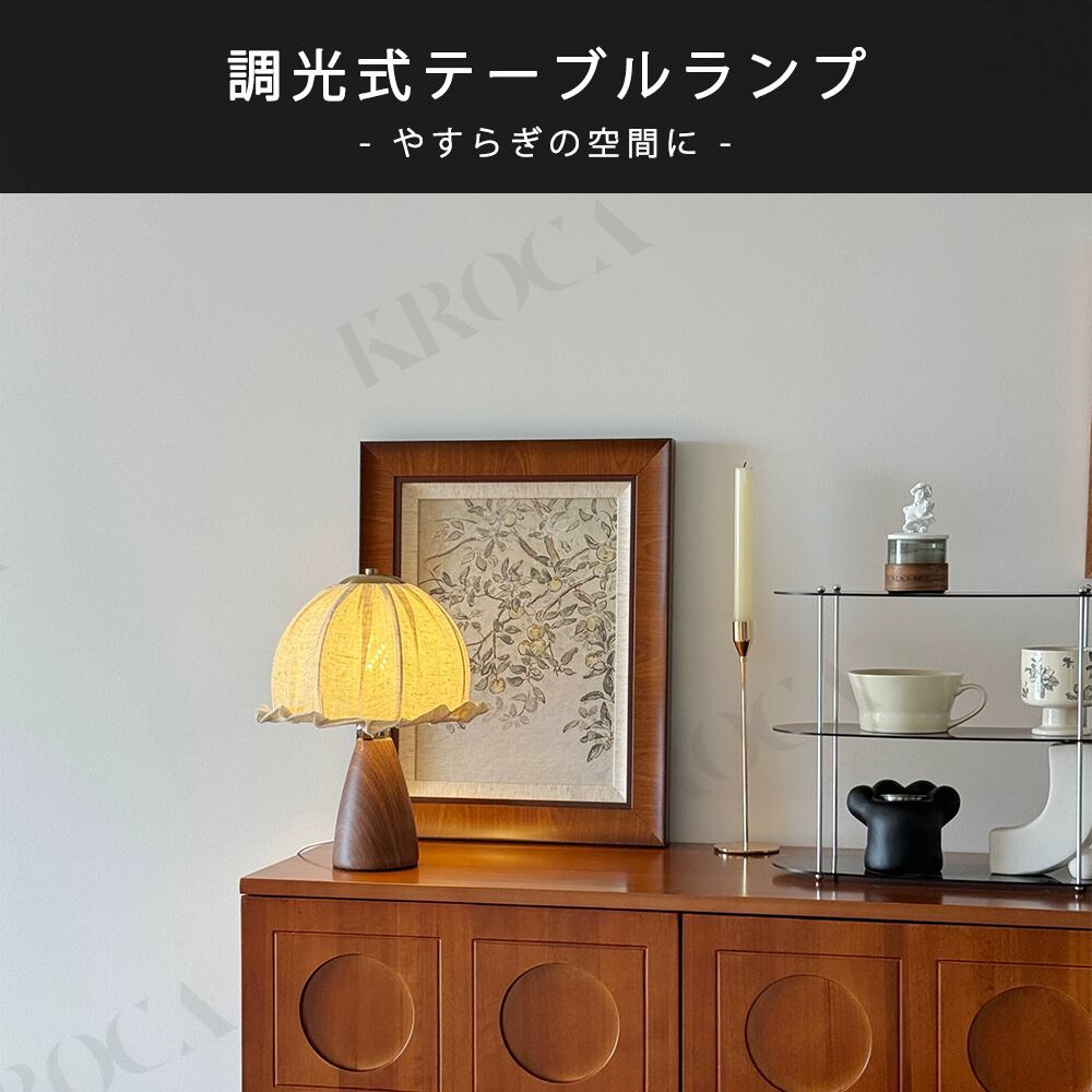 テーブルライト 布芸 1灯 電球付き 照明 おしゃれ テーブルランプ LED 北欧 木製